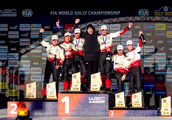 Tras ellos, Sami Pajari completó el podio Toyota, asegurando su segundo top 3 con una conducción serena que le permitió mantenerse por delante de Oliver Solberg. Solberg, que había liderado al principio del rally antes de sufrir un costoso pinchazo tras una salida el viernes, remontó hasta el cuarto puesto de la general.