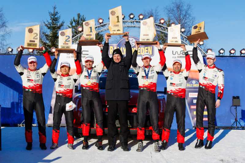 TOYOTA GAZOO Racing World Rally Team (TGR-WRT) completa un Rally de Suecia histórico monopilizando las cuatro primeras posiciones de la prueba. Tras el podio completo 100% TGR-WRT conseguido en el Rally de MonteCarlo en la prueba inaugural, es la primera vez que un fabricante ocupa todas las posiciones del podio en dos rondas consecutivas del Campeonato del Mundo de Rallyes —World Rally Championship (WRC)— de la FIA desde que Citroën lo hiciera en 2010. La última vez que se logró esta hazaña en las dos primeras pruebas de una temporada fue cuando Audi lo consiguió en MonteCarlo y Suecia en 1984.