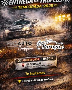 Este sábado. 21 de Febrero, la Escudería Faroga y ProAuto Competición realizarán la entrega de Trofeos de sus Copas 2025.
