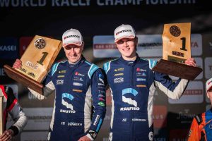 Lauri Joona / Antti Linnaketo, grandes exponentes también de su nación en WRC2, mantienen su vínculo asimismo con la firma española. Después de haber disputado previamente dos pruebas preparatorias sobre nieve en su país, han comenzado su campaña mundialista en el Rally de Suecia, sellando un valioso tercer puesto que ha rematado el pleno de equipos finlandeses, y el primer triplete en el WRC (World Rally Championship) de Marina Racewear. Un resultado nunca visto a este nivel por parte de un fabricante de nuestro país.