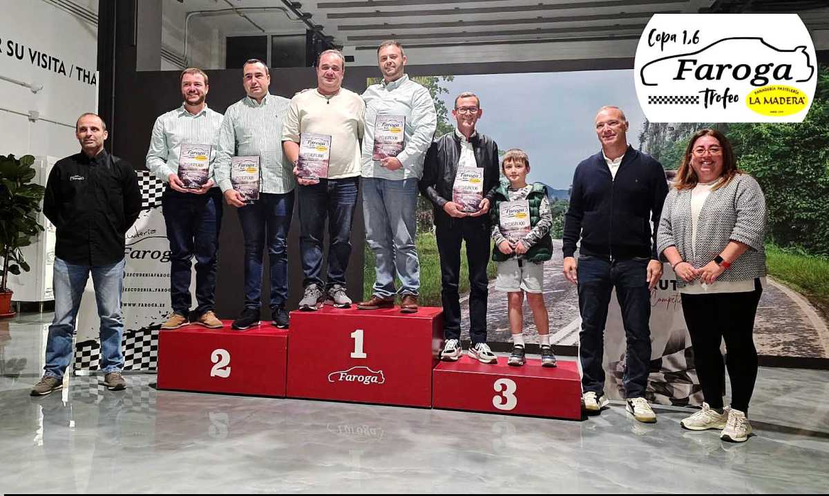 Mario Déniz y Carlos Alemán reciben el trofeo de ganadores de la Copa Faroga 1.6 Pastelería La Madera