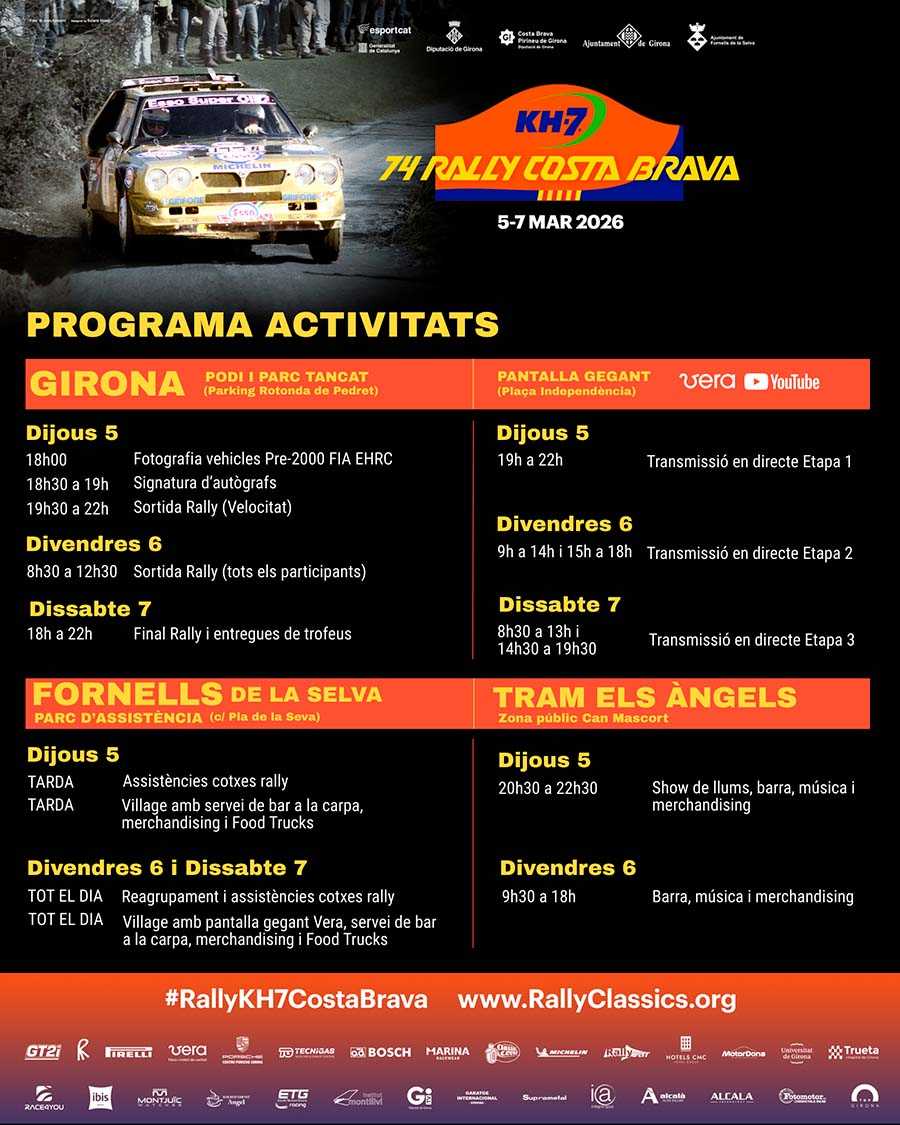 El 74 Rally KH-7 Costa Brava es la primera prueba puntuable para ambos campeonatos europeos, Pre-1992 y Pre-2000, y también puntúa para los Campeonatos de España (CERH) y Cataluña, en las modalidades de Velocidad y Regularidad.