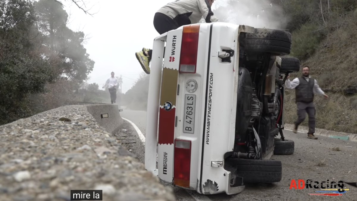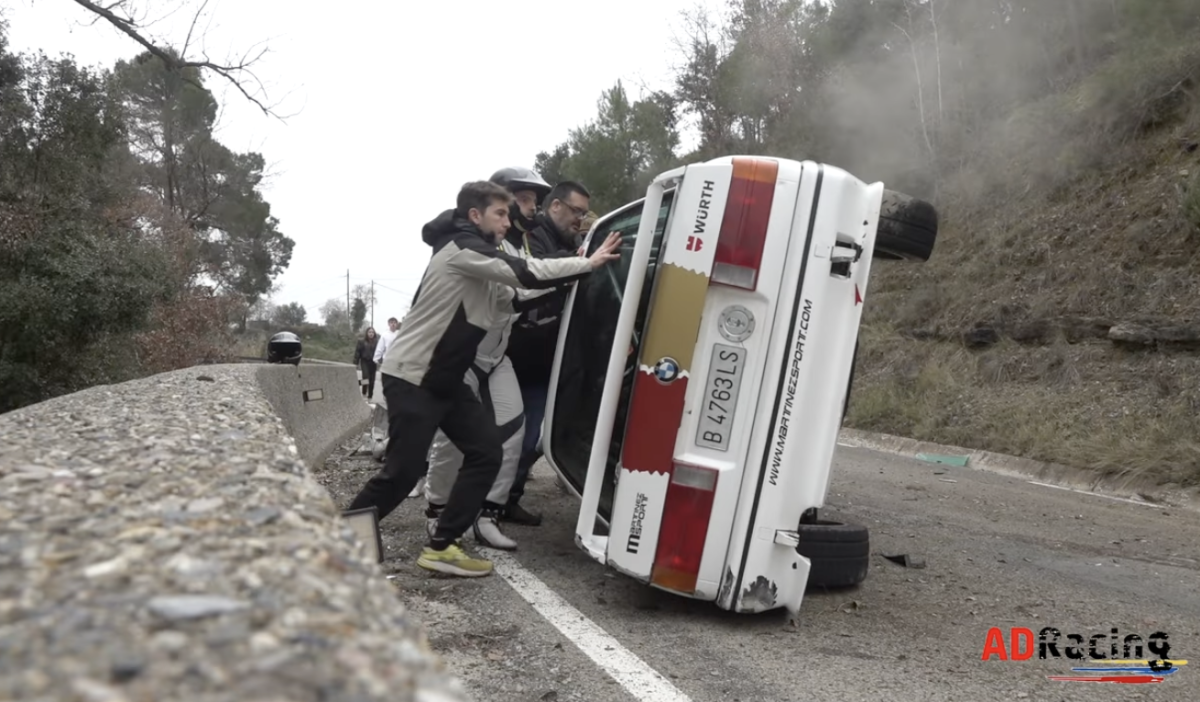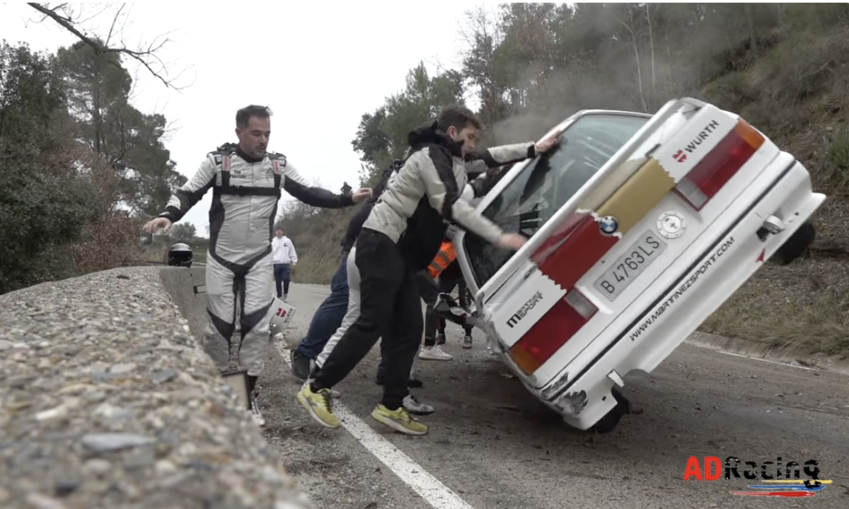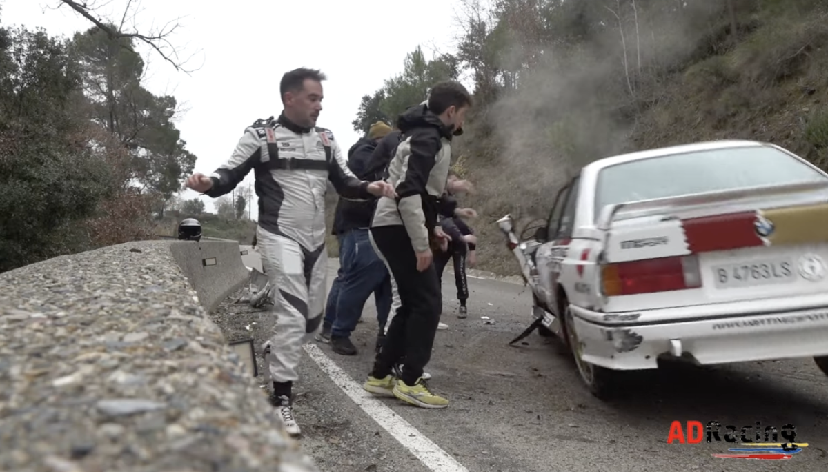 Los compañeros de ADRacing Media estaban captando las imágenes del Rallysprint Navarcles 2026 cuando el equipo compuesto por José María Martínez y Luka Larrosa (BMW M3 E30) sufría una muy fuerte salida de carretera justo donde se encontraban con su cámara.