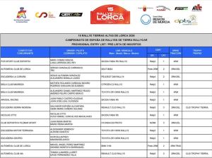 Publicamos la lista de inscritos del XV Rallye Tierras Altas de Lorca, cita del Campeonato de España de Rallyes de Tierra – Rallycar 2026.