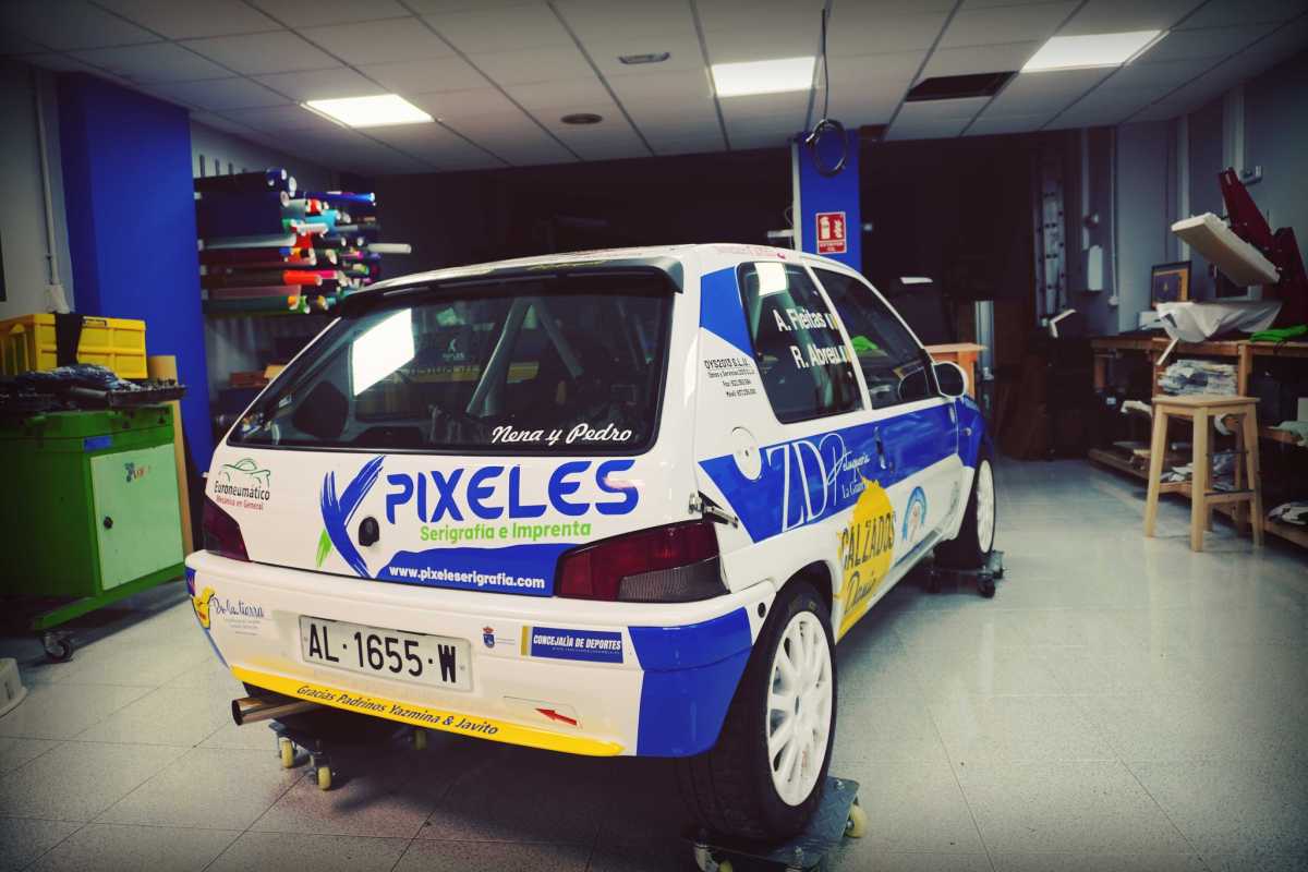 Pixeles Serigrafía ha ubicado su último trabajo, la rotulación del Peugeot del piloto Ángel Fleitas.