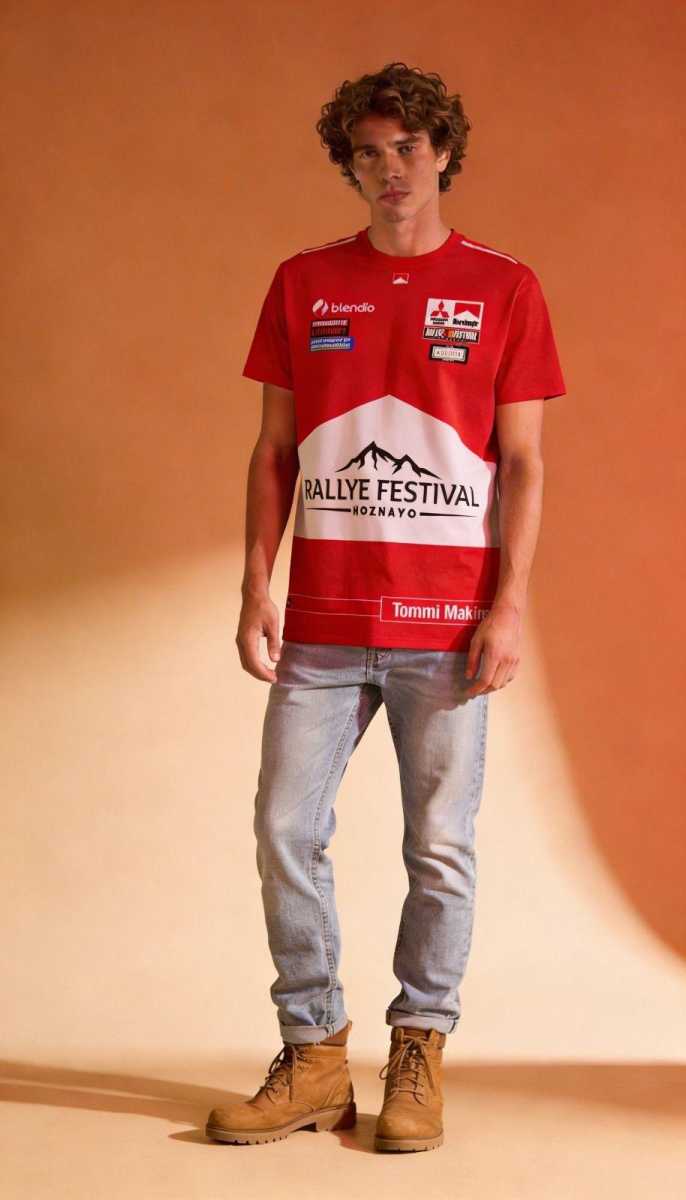 Inspirada en el icónico mono de carreras del legendario piloto Tommi Mäkinen, esta camiseta traslada a la calle la esencia de los tramos, la pasión por la velocidad y la estética inconfundible de una época dorada de los Rallyes. Su diseño combina los característicos colores rojo y blanco, integrando además el nombre del Festival y los patrocinadores en una composición única que convierte esta prenda en un auténtico objeto de colección para los aficionados.