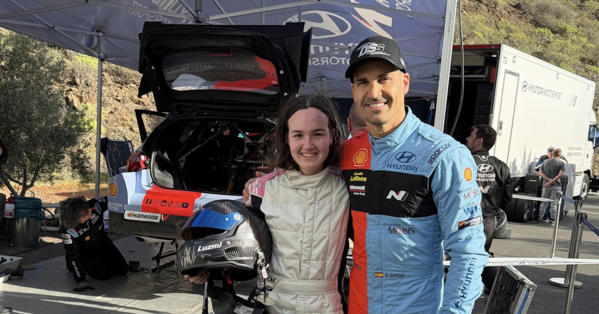 La joven piloto grancanaria Luzmi Santana fue una de las afortunadas que se subió a la derecha del piloto cántabro Dani Sordo en el Hyundai i20 N Rally1 en el sur de la isla de Gran Canaria.