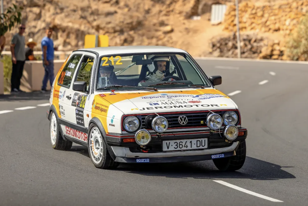 El piloto tinerfeño Adán Martínez ha conformado que esta temporada 2026 realizará el Campeonato de Rallys de Tenerife en la categoría R con su Volkswagen Golf MK2 y Ana Sánchez a su derecha.