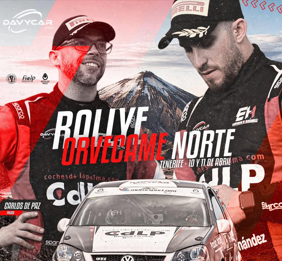 La Escudería La Palma Isla Bonita afronta el Rally Orvecame Norte con el equipo formado por Carlos de Paz y Eduardo Hernández, quienes competirán los días 10 y 11 de abril con el objetivo de lograr un resultado destacado.