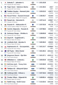 Katsuta completó el rally con el quinto mejor tiempo en la Power Stage, y parecía que se conformaría con el segundo puesto. Pero detrás de él, el rally de Neuville se desmoronó cuando tuvo problemas y se vio obligado a detenerse, entregando la victoria al piloto de Toyota de forma extraordinaria.