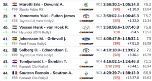 En el WRC2, Yohan Rossel selló una victoria histórica para Lancia, otorgando al Ypsilon HF Rally2 su primer triunfo en la categoría. Rossel finalizó cuarto en la general, por delante de su hermano Léo Rossel y Nikolay Gryazin, un resultado que también marcó el primer puesto entre los cinco primeros de Lancia en una prueba del WRC desde 1994.