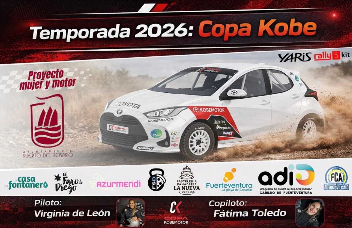 La piloto majorera Virginia de León ha conformado que correrá esta temporada 2026 en la Copa Kobe 2026 a los mandos de un Toyota Yaris Rally5. A su derecha estará la palmera Fátima Toledo.
