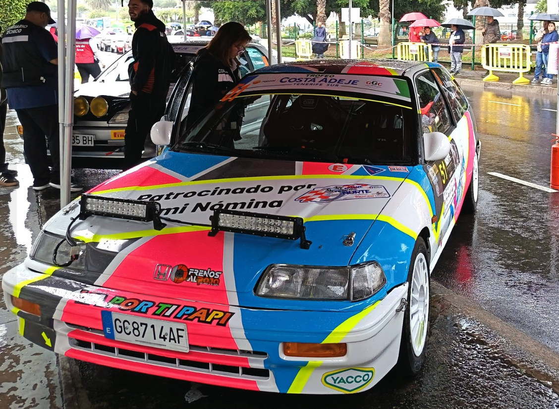 Los tinerfeños Ayoze Rodriguez y Sarita Melo compitieron en el Rally Norte de Tenerife 2026 con el Honda Civic ED7, teniendo que tomar el camino del abandono por problemas mecánicos en su estreno con la veterana unidad.