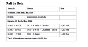 La cita noiesa, que este año celebra su cuadragésimo aniversario, es una de las pruebas más emblemáticas y técnicas del calendario. Sus tramos, caracterizados por un asfalto habitualmente deslizante y zonas de alta velocidad, exigirán la máxima precisión técnica. Para Vilariño, este rali supone la segunda cita de su bloque estratégico de tres carreras, clave para definir la continuidad del proyecto deportivo durante el resto de la temporada 2026.