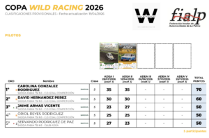 Así, con los cinco equipos agrupados en apenas 20 puntos, la Copa Wild Racing se tomará un descanso hasta el mes de junio, momento en el que se disputará la tercera entrega de la temporada 2026.