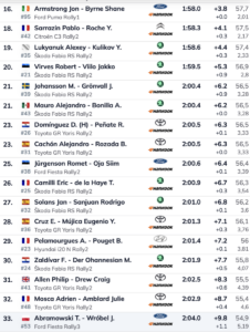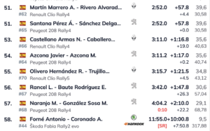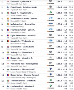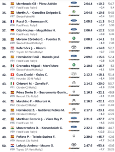 Detrás de los dos primeros, Roberto Daprà se colocó tercero en la general con su Škoda Fabia RS Rally2, mientras que Dani Sordo, de Hyundai, quedó cuarto en su regreso a los monoplazas de Rally1 con el i20 N Rally1.