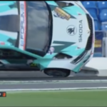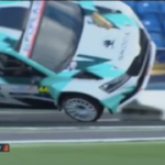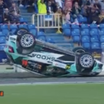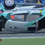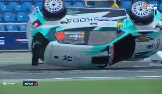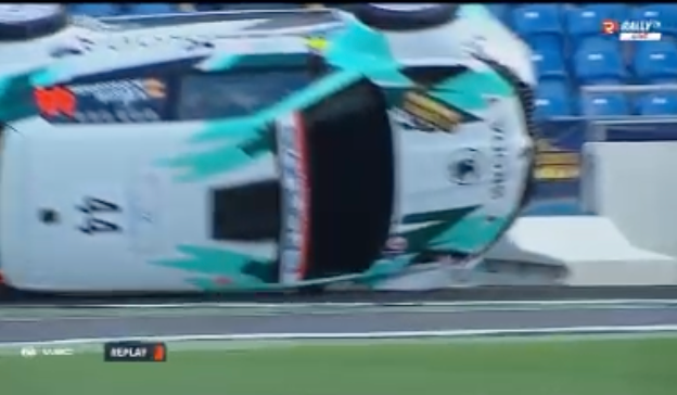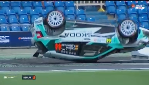 Los comisarios allí presentes lograron darle la vuelta y colocarlo de nuevo con sus ruedas sobre el asfalto para poder reanudar la marcha.