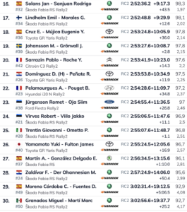 En WRC2, el triunfo ha sido por segundo año consecutivo para Yohan Rossel / Arnaud Dunand. Alejandro Cachón / Borja Rozada han escoltado a los franceses, revalidando la victoria del 2025 en la categoría WRC2 Challenger.