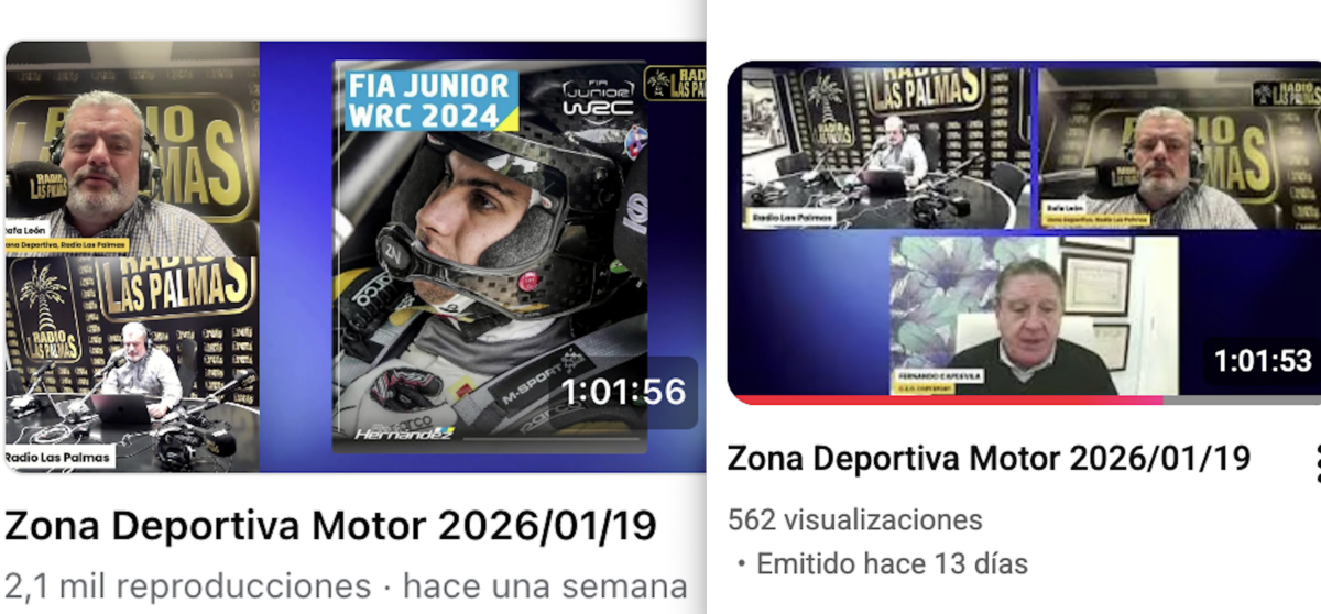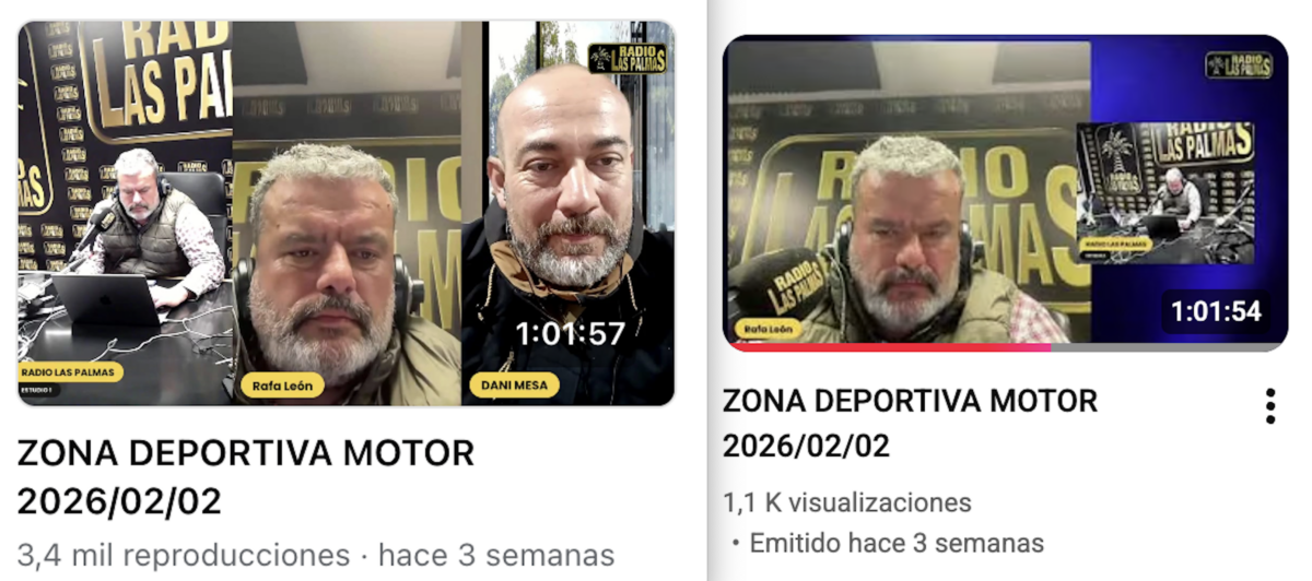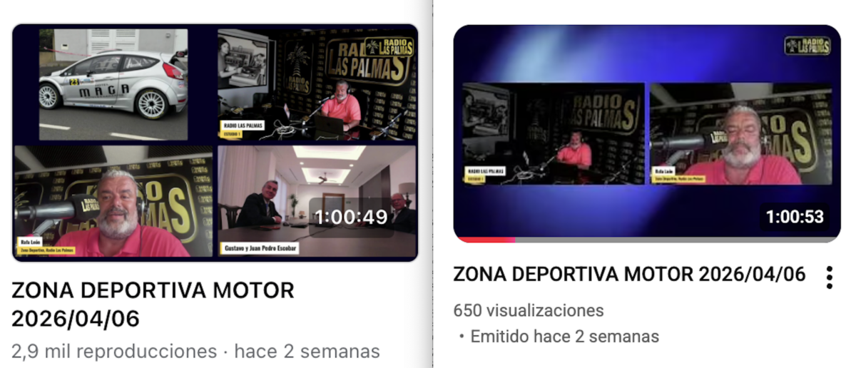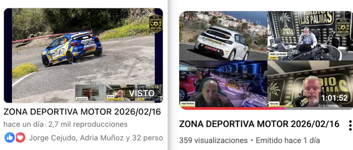 Este espacio monográfico, que se emite los lunes y miércoles de 19 a 20 horas en la amplia red de frecuencias de Radio Las Palmas, además de hacerlo también en directo en su canal de Facebook y YouTube, ha logrado 103.138 visualizaciones en los 30 programas, tanto en el canal de Facebook como en el de YouTube, lo que significa una media de 3437 visualizaciones.