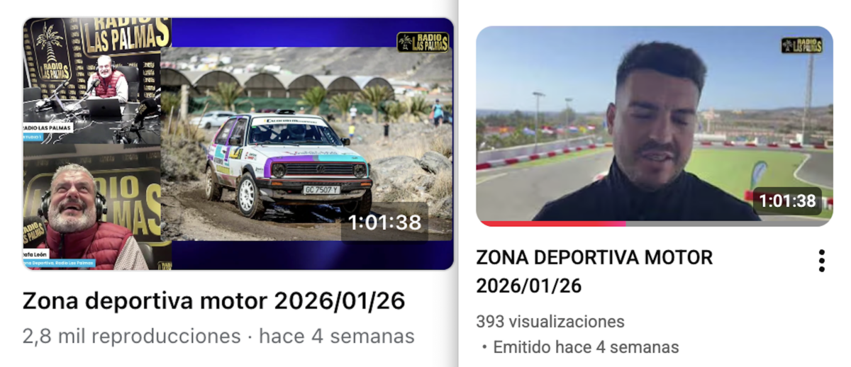 Zona Deportiva Motor, el programa del motor de Radio Las Palmas, ha superado la barrera de las 100.000 visualizaciones al cumplir su trigésimo programa en antena, aunque logró superar esa cifra al cumplir el vigésimo noveno programa.