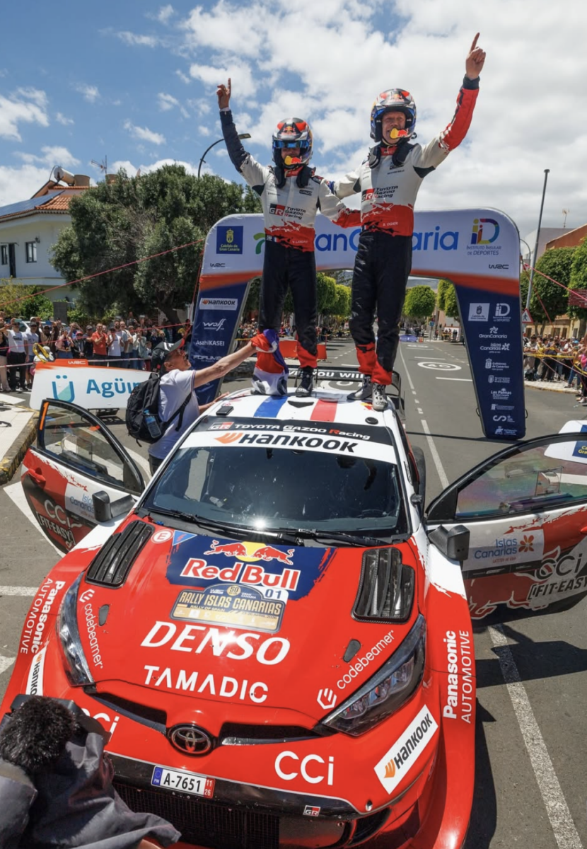 Los franceses Sebastien Ogier y Vicent Landais (Toyota GR Yaris Rally1) fueron los grandes dominadores de la jornada del viernes del 50 Rally Islas Canarias – Rally de España, acabando con8.9 sobre sus compañeros de equipo, el sueco Oliver Solberg y el inglés Elliott Edmondson (Toyota GR Yaris Rally1). Pero el sábado todo cambió y les recortaba 5,1 para quedar todo para los cuatro tramo del domingo con3.8 segundos de renta. En dos tramos les volvía a recortar 1.6, quedándose la diferencia en 2.2 a falta de dos tramos. Pero en el penúltimo Oliver y Elliott se salía, dejando respirar a Ogier y Landais, que inscriben su nombre por primera vez en la prueba canaria.