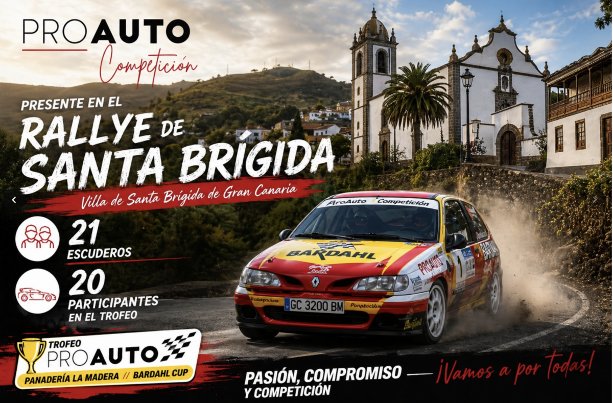 El 42º Rallye Villa de Santa Brígida volverá a escribir una página memorable en el automovilismo canario, y lo hará con una amplísima inscripción de ProAuto Competición, que desembarca en la prueba satauteña con una de las participaciones más numerosas, sólidas y apasionadas de toda la lista de inscritos.