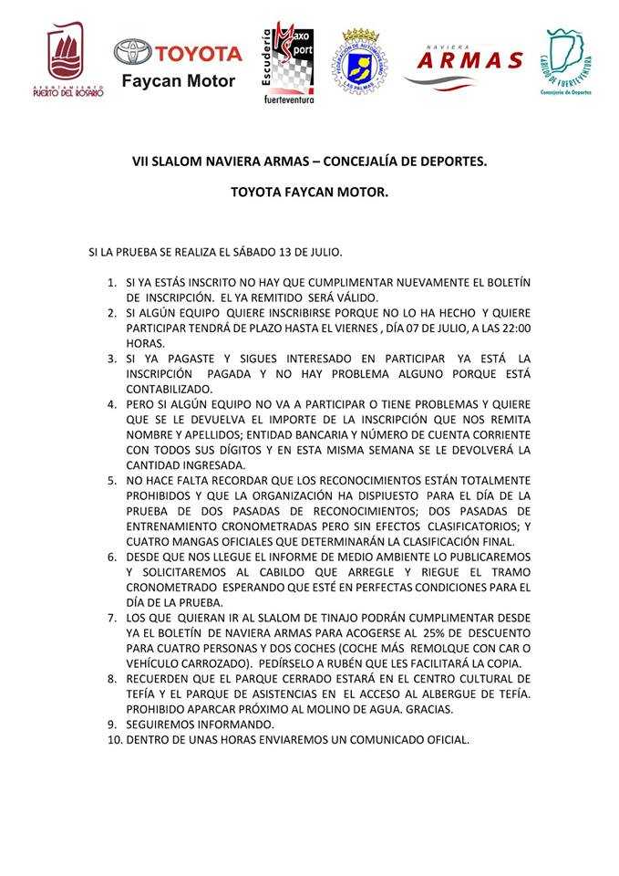 El VII Slalom Puerto del Rosario Naviera Armas – Concejalía de Deportes (Fuerteventura) se disputará el sábado 13 de julio.