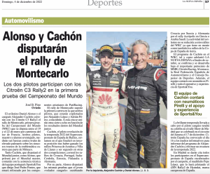 Lo adelanta el periódico asturiano La Nueva España. Los pilotos asturianos Daniel Alonso y Alejandro Cachón disputarán el Rally de Montecarlo con sendos Citroën C3 Rally2 en la que será la primera prueba del Campeonato del Mundo de Rallys (WRC).