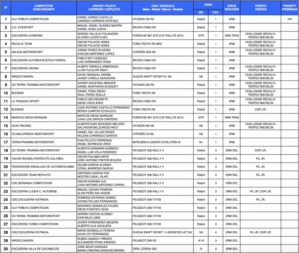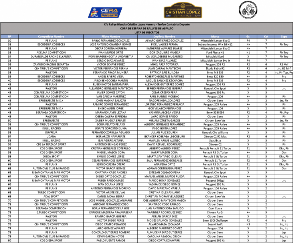 El Rallye Blendio Cristian López, cita del Campeonato de España de Rallys, ha publicado su lista de inscritos donde el gran atractivo es el cántabro mundialista Dani Sordo.