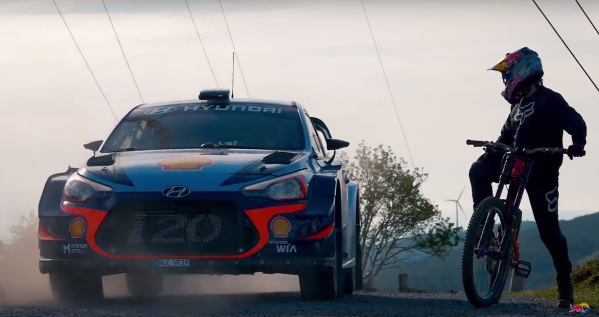 Dani Sordo se ‘reta’ con su Hyundai i20 WRC con el piloto de Mountain Bike Andreu Lacondeguy en un curioso vídeo.