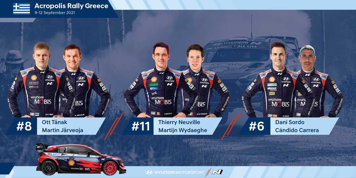 Hyundai Motorsport ha confirmado su alineación de pilotos y copilotos para el Rally Acrópolis de Grecia, donde el tercer equipo lo formarán los españoles Dani Sordo y Cándido Carrera.