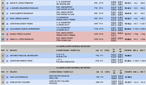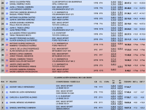 Guerra y Vera tuvieron que ir remontando puesto que arrancaron con el tercer mejor tiempo inicial, pero poco a poco fueron remontando y poniéndose primeros para superar al final de la jornada en 11.2 a los lanzaroteños Esteban Feo y Jesús Alonso (Mitsubishi Lancer Evo VIII).