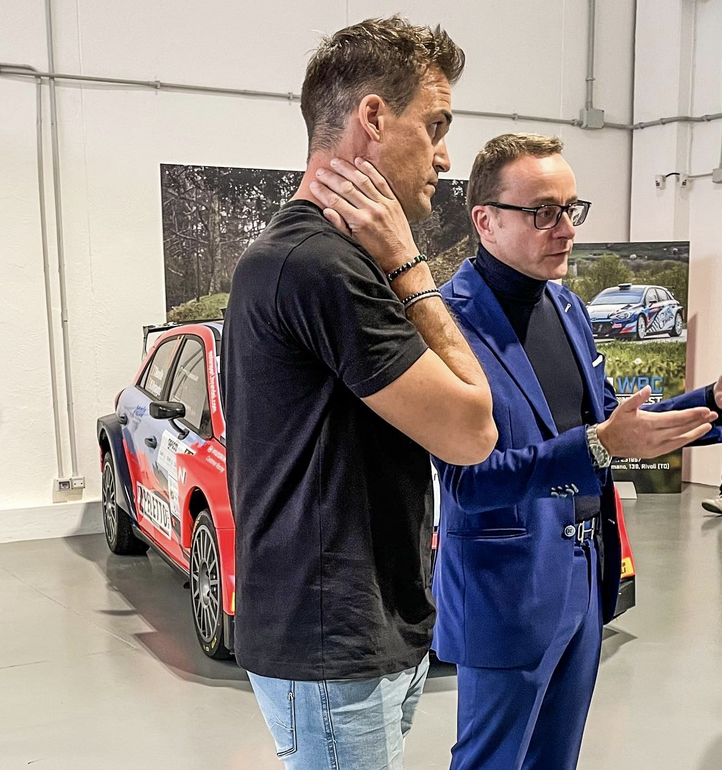 Dani Sordo visita las instalaciones de Alessandro Gino, propietario de dos i20 que pilotó el cántabro