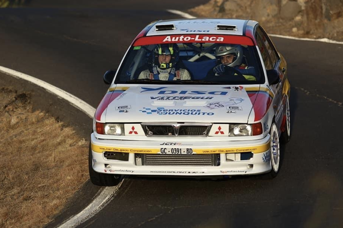 Poco duró la participación del equipo compuesto por el tinerfeño Walter Delgado y el grancanario Dani Sosa con el Mitsubishi Galant VR4 en el Rallysprint de Atogo.